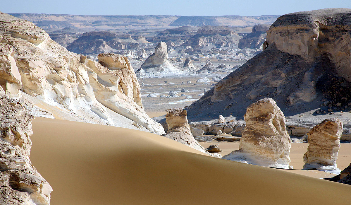Pranzeremo in un bel ristorante a Bahariya prima di riprendere il nostro viaggio verso il Deserto Bianco, che amministrativamente appartiene all'Oasi di Farafra. Lungo la strada, visiteremo il Deserto Nero, caratterizzato da formazioni nere ampie e montagne che ospitano enormi depositi di antiche rocce vulcaniche. Passeremo anche dalla Valle di El Haize, il villaggio più meridionale di Bahariya; se lo desideri, puoi fare il bagno nella sorgente termale. Poi ti porteremo nell'area delle Montagne di Cristallo, dove vedrai i cristalli di quarzo, per poi arrivare alla mozzafiato Valle di Agabat, dove lo sandboarding sarà una delle tue attività principali. Più tardi, goditi un'avventura di campeggio notturno nel Deserto Bianco che include l'osservazione di un tramonto spettacolare mentre le tue guide preparano una cena gourmet per te.