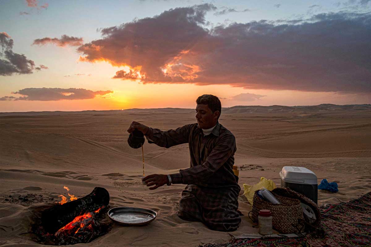 Dopo la colazione, inizia il tuo Safari nel Deserto dell'Oasi di Siwa. La prima fermata è al villaggio di Maraki per ammirare le interessanti impronte archeologiche sulla Grande Montagna di Siwa. Proseguiamo con l'avventura e goditi la vista mentre ci spostiamo tra le dune fino ad arrivare all'area con fossili visibili e antiche rocce coralline di origine Cambriana. Prosegui verso una delle località pittoresche nel Grande Mare di Sabbia, che è classificata al terzo posto nel mondo per quanto riguarda i depositi di sabbia. Per goderti un emozionante Safari in Jeep, visita un'oasi panoramica situata nel cuore del deserto, che offre l'opportunità di fare il bagno con le Tilapia. Più tardi, emozionati con l'esperienza dello sandboarding. Questa attività è molto famosa tra i turisti grazie al relax e al bagno termale nella sorgente di Bir Wahid. C'è anche tempo per un'ultima vista mozzafiato del tramonto sul Grande Mare di Sabbia, tra le dune, questa volta accompagnato da un tè beduino alle foglie di limone.