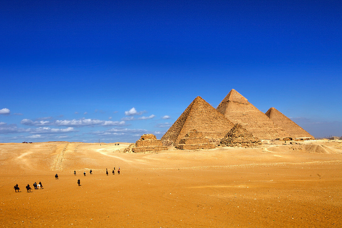 After breakfast, you will be accompanied by your guide to the Giza Plateau to visit the Great Pyramids of Cheops, Chefren, and Mykerinus, the Famous Sphinx, and the Valley temple facing the great statue. Additional visit to the Solar Boat in front of Cheops Pyramid (extra ticket on spot). Lunch will be served in a good quality restaurant, and then proceed to Sakkara area to visit Sakkara Complex and the first pyramid ever built (Djoser Pyramid). Move to Memphis, the Old Kingdom's capital, and the famous Necropolis.