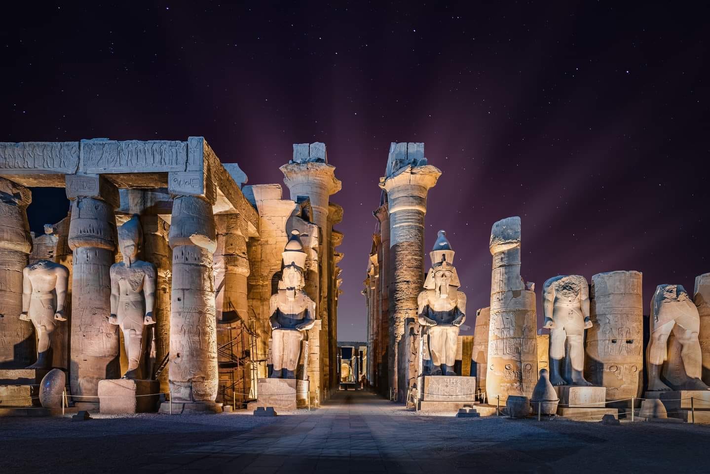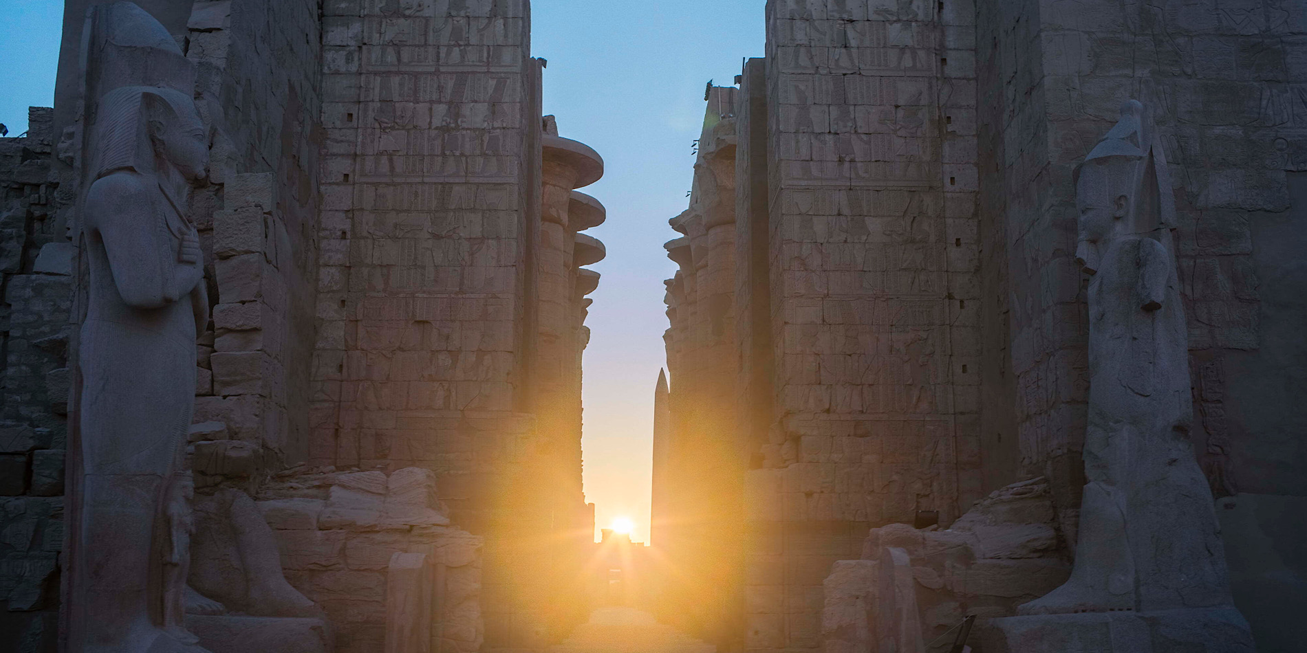 Tu guía te recogerá en tu hotel o crucero por el Nilo para disfrutar de una emocionante tarde en el Espectáculo de Sonido y Luz en el Templo de Karnak, ¡como parte de tus Egipto tours! Todo comienza con un paseo por la Avenida de las Esfinges, que conduce directamente a la gran fachada del Gran Patio. A medida que avanzas por el complejo, la resonante voz de un Faraón te narra la historia del Alto Egipto y del Nuevo Reino. Al mismo tiempo, luces resaltadas muestran las contribuciones de gobernantes como el Rey Tutankamón, Ramsés II y la Reina Hatshepsut contra el cielo nocturno.