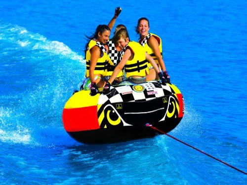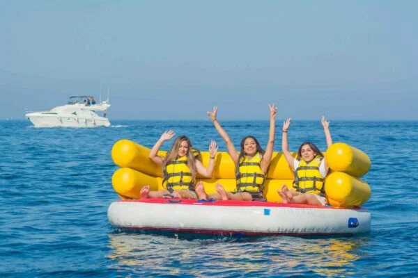 Después, llega la banana boat, pura emoción y diversión para todos. Hasta diez pasajeros pueden aferrarse a la lancha inflable mientras rebota sobre las olas. Esta actividad es una excelente experiencia para conectar, llena de risas y un montón de chapoteos: momentos geniales para niños y adolescentes en el tour perfecto desde Sharm El Sheikh. Después, este trepidante paseo en flotador te dará una descarga de adrenalina. La diversión a toda velocidad te dará la energía y la emoción necesarias, dejándote llevar fácilmente por el hermoso mar. Se proporcionarán chalecos salvavidas e instrucciones profesionales antes del paseo.